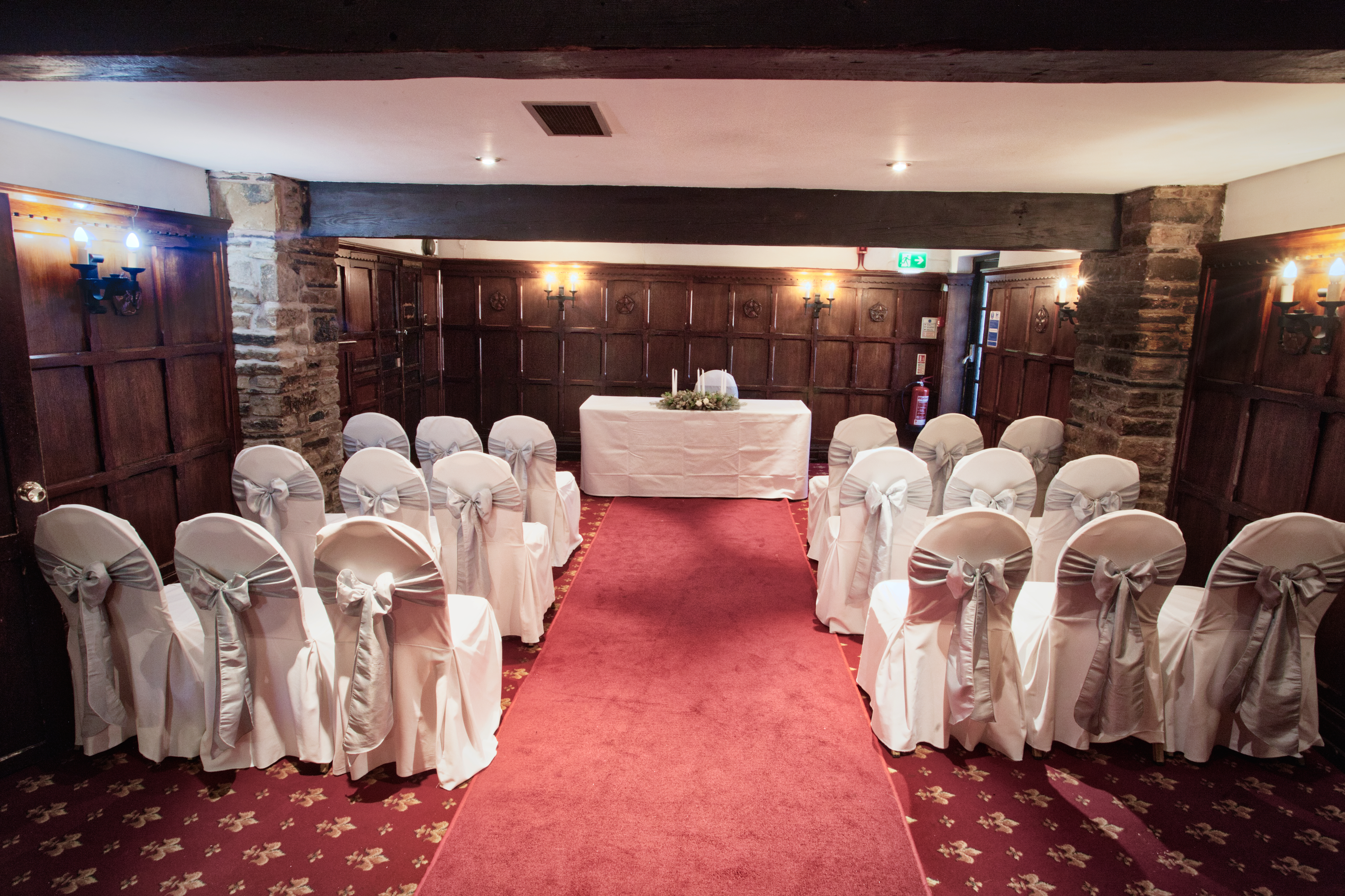 Our Chetham Suite is a charming and intimate wedding suite conveniently located within the main part of the hotel. The rich wooden walls paired with dimmed spotlights and flickering candles create a romantic and cosy atmosphere for your wedding ceremony, and is suitable for up to 30 guests.